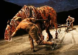 The horses are actually puppets made in Cape Town, South of Africa! The show is currently in Dublin at the bord gais theater for a month.